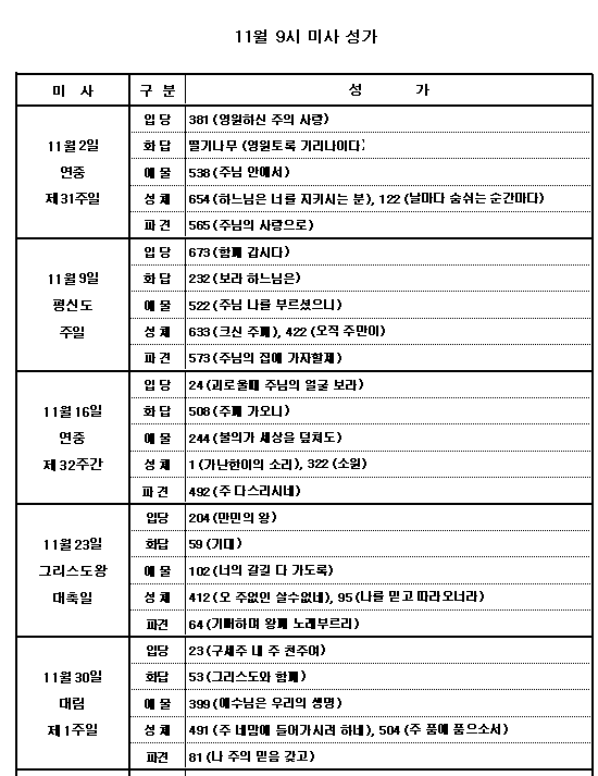 11월 9시 성가