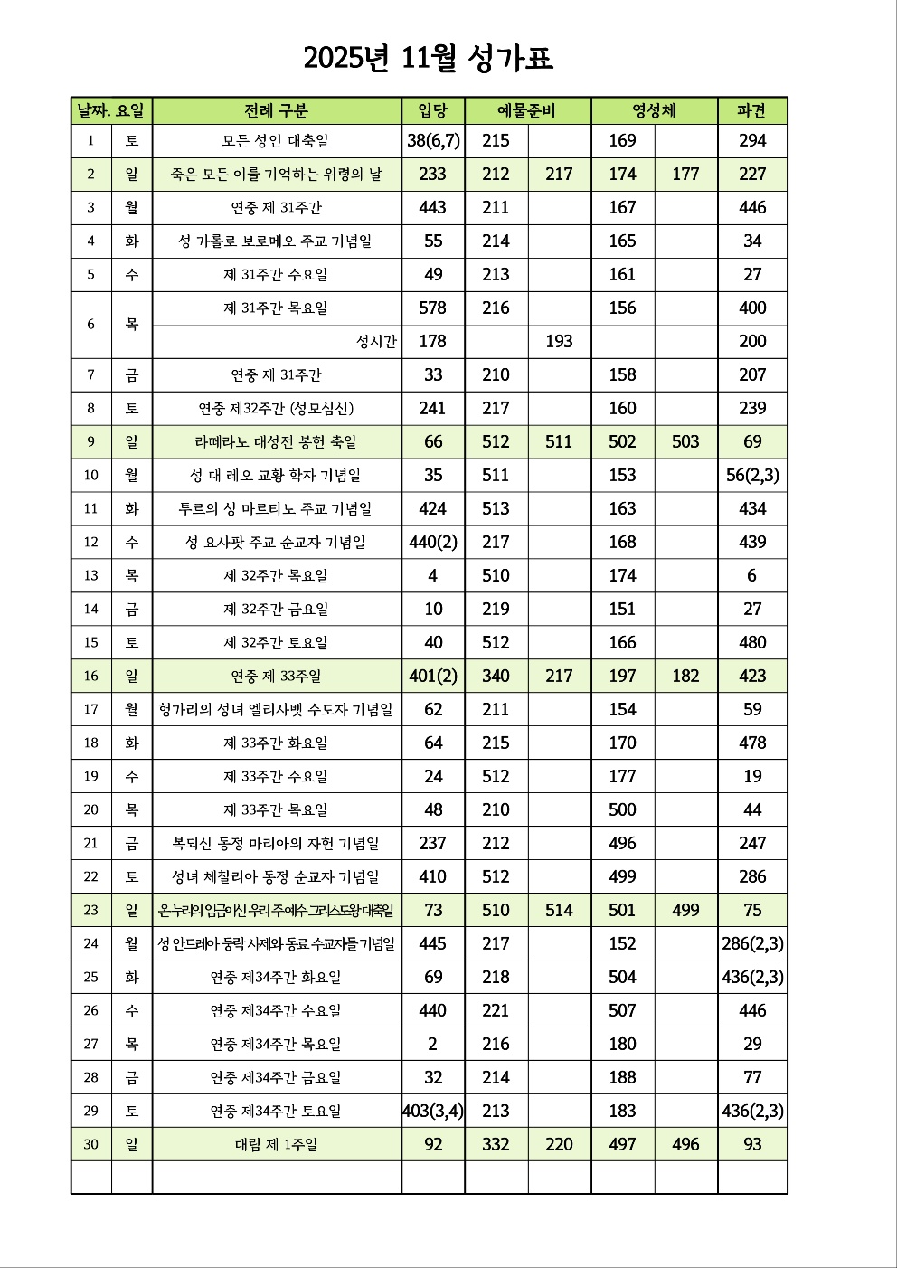11월6일 목요일 입당성가 578번에서 277번으로 변경합니다^^